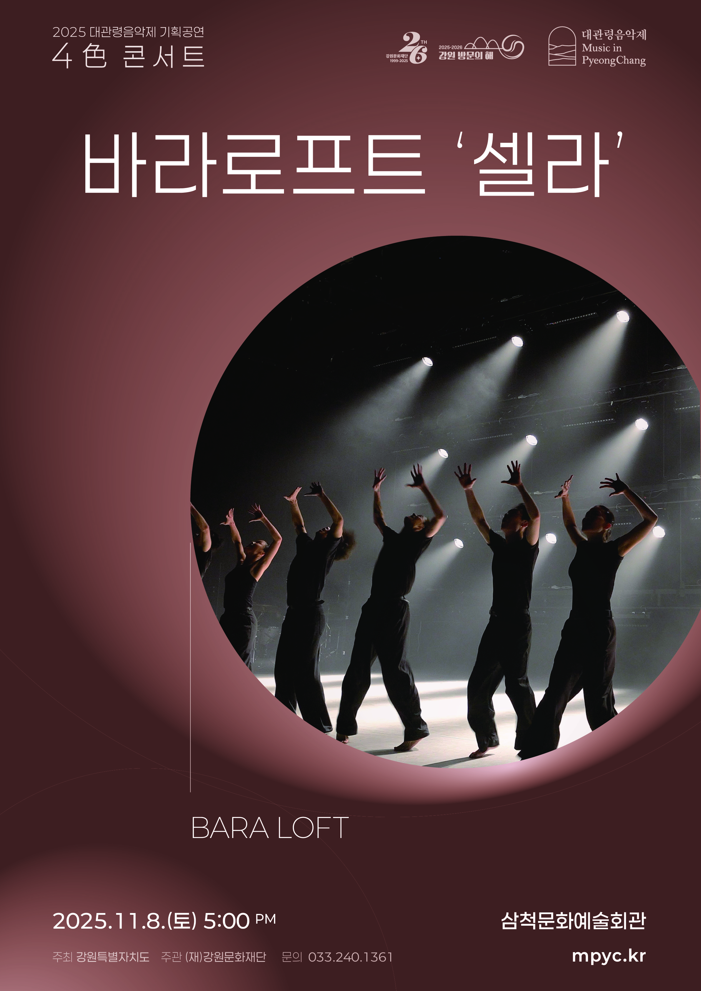 현대무용단과 오케스트라를 기반으로 춤과 연주가 한 무대에 결합된 새로운 공연 장르를 선보이는 예술단체 바라로프트 BARA Loft. 춤과 음악을 탁월하게 연결하고 해석해내는 바라로프트의 공연은 예술적 깊이로 관객들에게 독특한 울림을 선사합니다. 감각적이고 압도적인 종합예술 공연을 선보이며 신선한 콜라보 무대를 펼칠 세 번째 공연은 11월 8일(토) 오후 5시, 삼척문화예술회관에서 열립니다. |